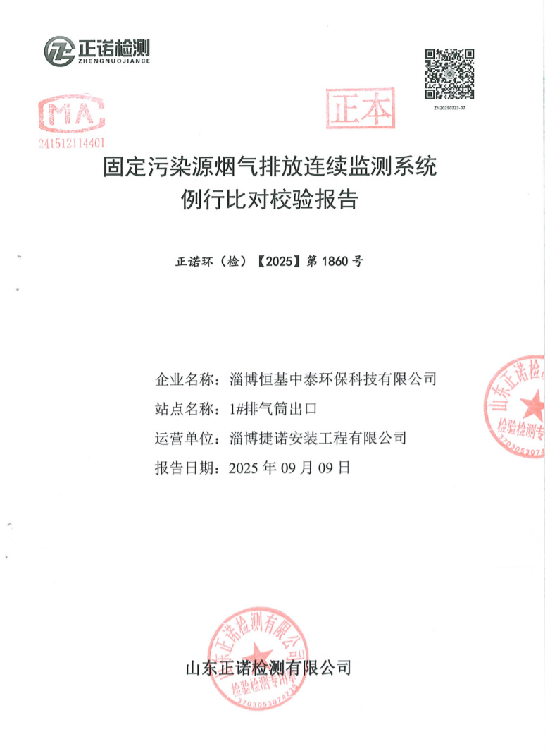 固定污染源烟气排放连续监测系统例行比对校验报告,2025年第三季度比对报告(点击查看报告文件)